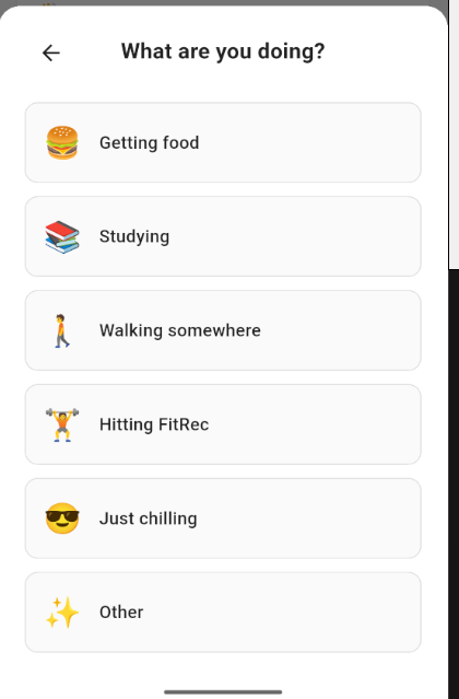 I'm still working on LinkUp, my social app for university students. I recently sent out a user survey that confirmed my fears: people are hesitant to post because they feel awkward being the first one to make a post, are unsure how many others are on the app and if someone would even join, and don't know what to post. In a nutshell, there is substantial friction in making a post. This is why I recently made an update to the app, adding things like "quick buttons" to the feed, that make it easy to know how you can use the app and make it quick to make a post. I also streamlined the post process to make it feel smoother. Here's a couple of screenshots to give you an idea: